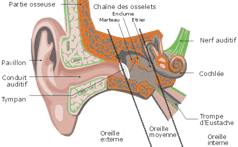 Cet organe est composé de trois parties : l’oreille externe, l’oreille moyenne et l’oreille interne qui permettent d’envoyer au cerveau les informations sonores qu’elles ont reçues.